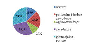 Wykres: Struktura bezrobotnych według poziomu wykształcenia w 2009 roku